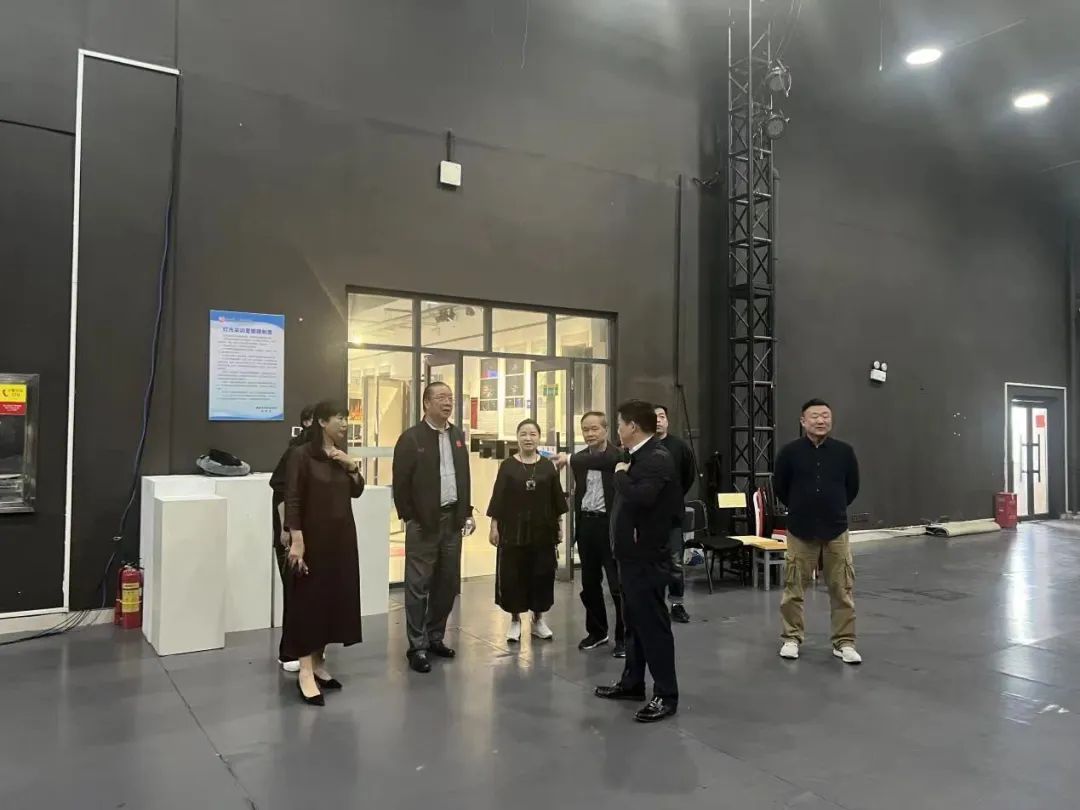 中国演艺设备技术协会副理事长傅高武、邓朴琪,协会湖南省办事处主任专家唐国文,协会融媒体中心运营总监丁曼等,以及我校设计艺术学院相关负责人陪同调研座谈。