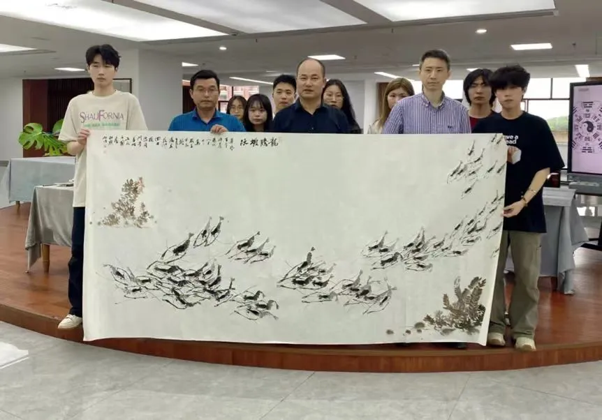 活动最后,范仲现场即兴创作8尺大幅水墨画作品《龙腾虾跃》赠予母校。同学们纷纷表示,要以优秀校友为榜样,进一步夯实专业基础,不断锤炼专业技能,早日成长为德艺双馨的新时代艺术人才。