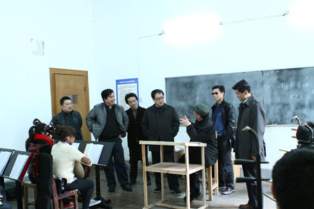 肖副主任一行在参观了校园环境后,来到戏剧系随堂观看了戏曲表演班、器乐班的课堂教学,并与师生进行了交流和指导。