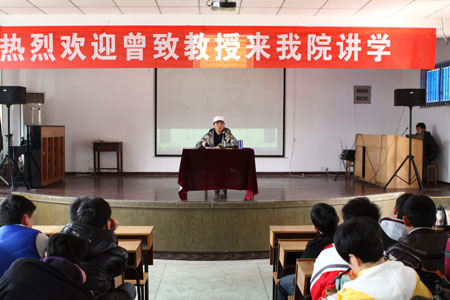 曾致教授热诚的向学生们传授自己多年从事播音主持工作的经验。对于如何成为一个成功的主持人,他给出了三个秘诀:做个有准备的人,做个有责任心的人,做个善于表达的人。他还通过著名主持人董卿的生动事例和一段视频来告诉同学们如何提高自己的播音主持水平,并鼓励同学们要立志做一名敢想敢做的主持人。