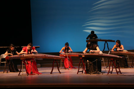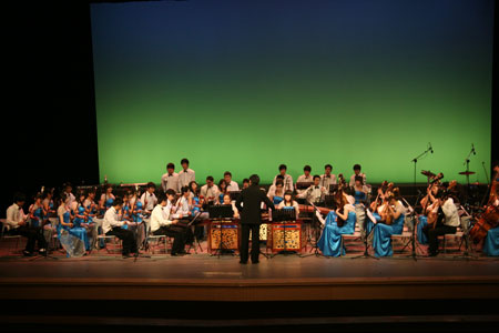 晚会在一首“蓝缎水彩拨香云,歌舞天女现迷踪”的民乐合奏曲《飞天》中拉开了序幕。整场晚会节目内容丰富、形式多样,有悠扬高亢的男声独唱《沁园春 雪》、婉转优美的女生独唱《阿妹出嫁》等,有威武雄壮的弹拨乐合奏《土耳其进行曲》、激情洋溢的管乐合奏《火热的拉丁》等;曾在第十届CCTV青年歌手大赛中获得湖南赛区合唱组金奖的音乐系合唱团带来的一首《游子情思》,委婉的曲调、低沉地吟唱,诉说着在外求学游子的思乡之情;古筝重奏《汩罗江上》、手风琴与小乐队《在巴黎的天空下》和通俗连唱等,美妙的音色征服了全场听众。