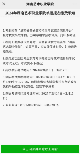 2.在网上缴费确认交易时,应查看收款方是否为“湖南艺术职业学院”,如果不是,应立即停止付款,并电话告知我校。