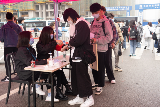 因疫情防控要求,参加此次单招的考生只能在考试当日分批次进校,考生们依次排队并保持间隔,逐一接受体温测查和健康码、身份证、准考证核验,确认无异常情况方可入校。学院共设4个考区、21个考场,15个候考室。考试过程中,全部考场秩序井然、调度高效。
