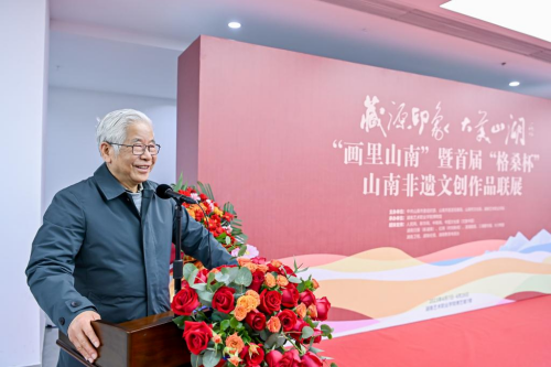 黄铁山作为嘉宾代表致词。他回顾了自己早年在湖艺求学的经历,并表示本次展览在母校举行,湖艺师生能够同赏山南美景、助力藏湘共荣,令人深感欣慰。西藏是一块神奇的土地,孕育了许多优秀的艺术家和艺术作品,此次活动展示了藏湘交流成果,期待两地进一步深化交流,密切合作。
