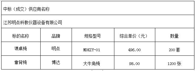 受湖南艺术职业学院的委托,中通服供应链股份有限公司湖南分公司对湖南艺术职业学院课桌椅、靠背椅采购项目进行竞争性磋商,现将成交结果公告如下:
